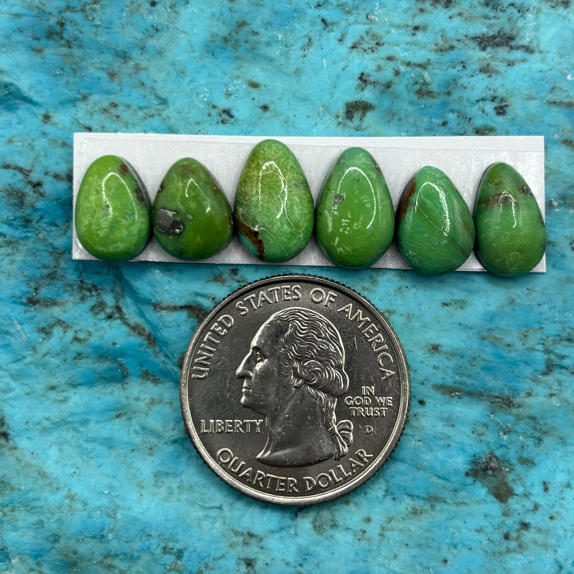 6 Cielo Turquoise Cabochons Backed, Sold As Card