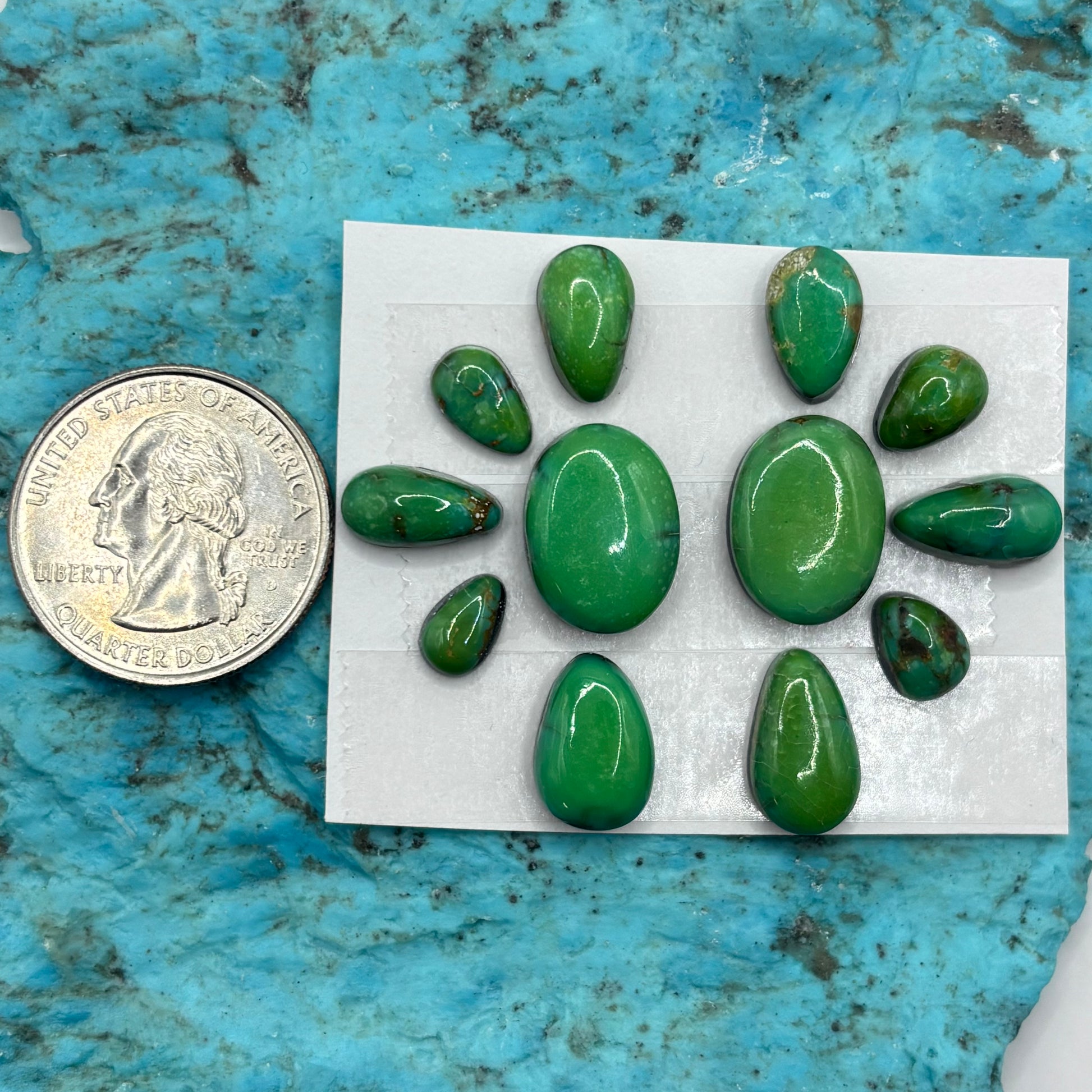 12 Cielo Turquoise Cabochons Backed, Sold As Card