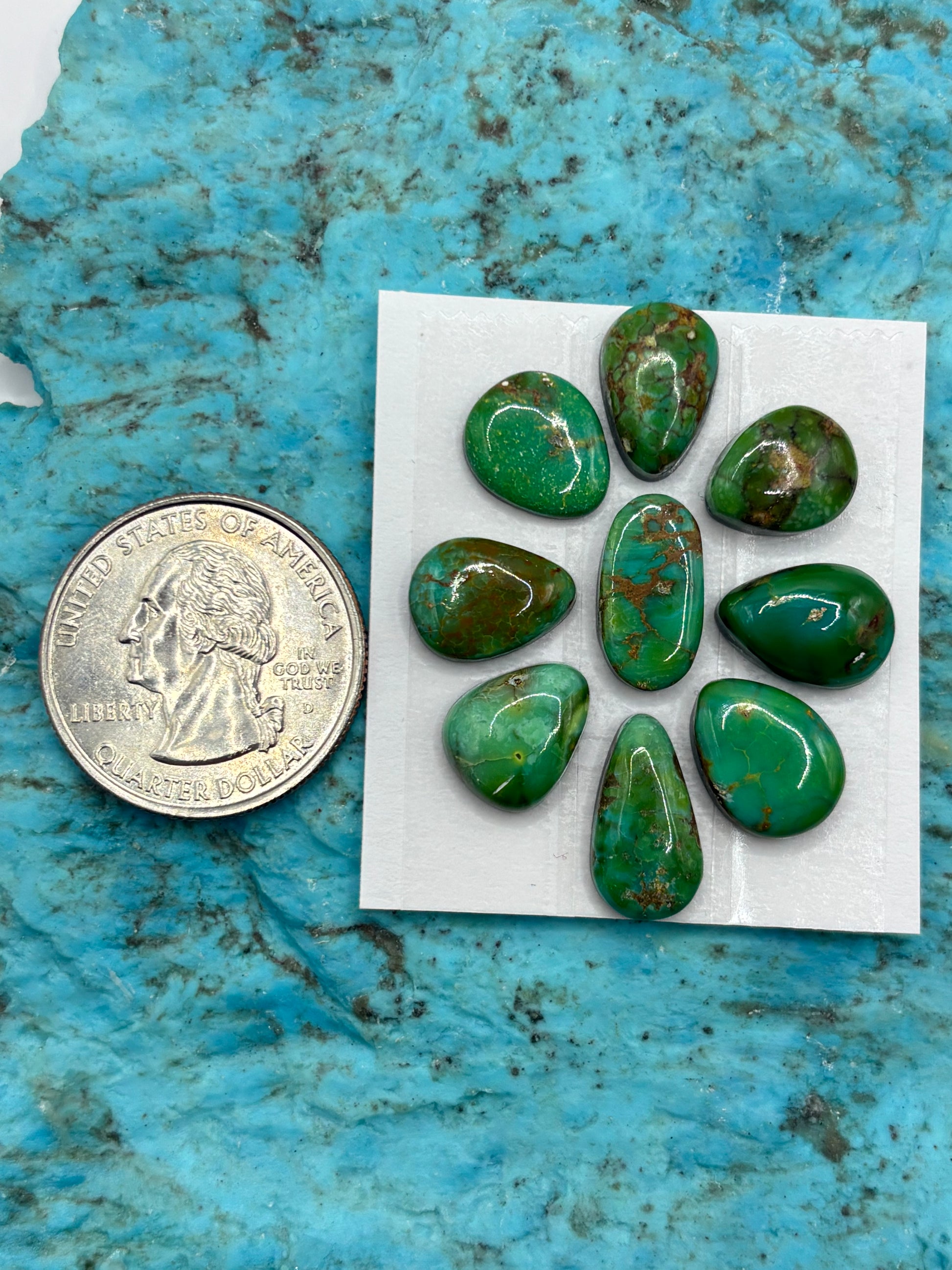 9 Cielo Turquoise Cabochons Backed, Sold As Card