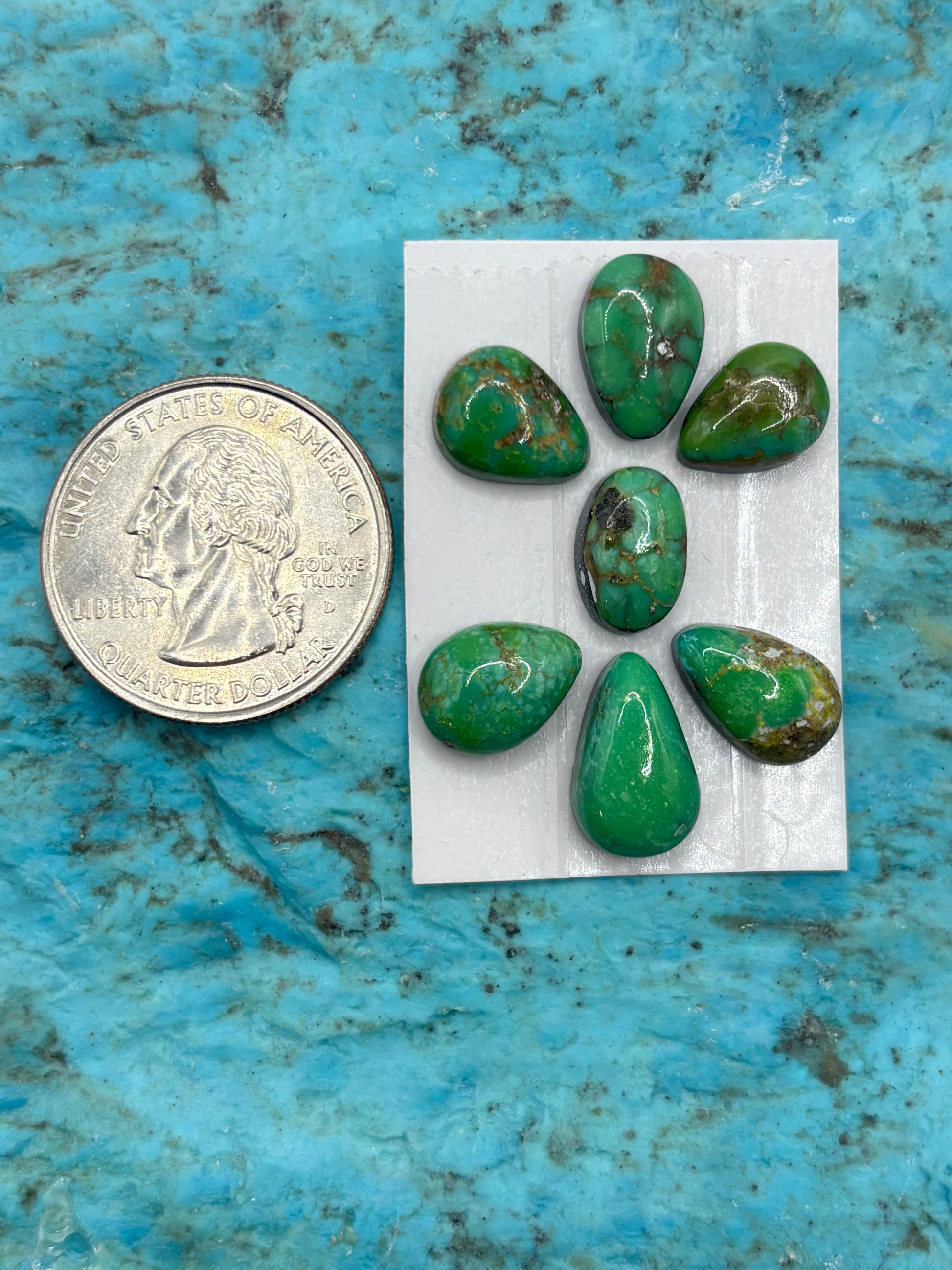 7 Cielo Turquoise Cabochons Backed, Sold As Card
