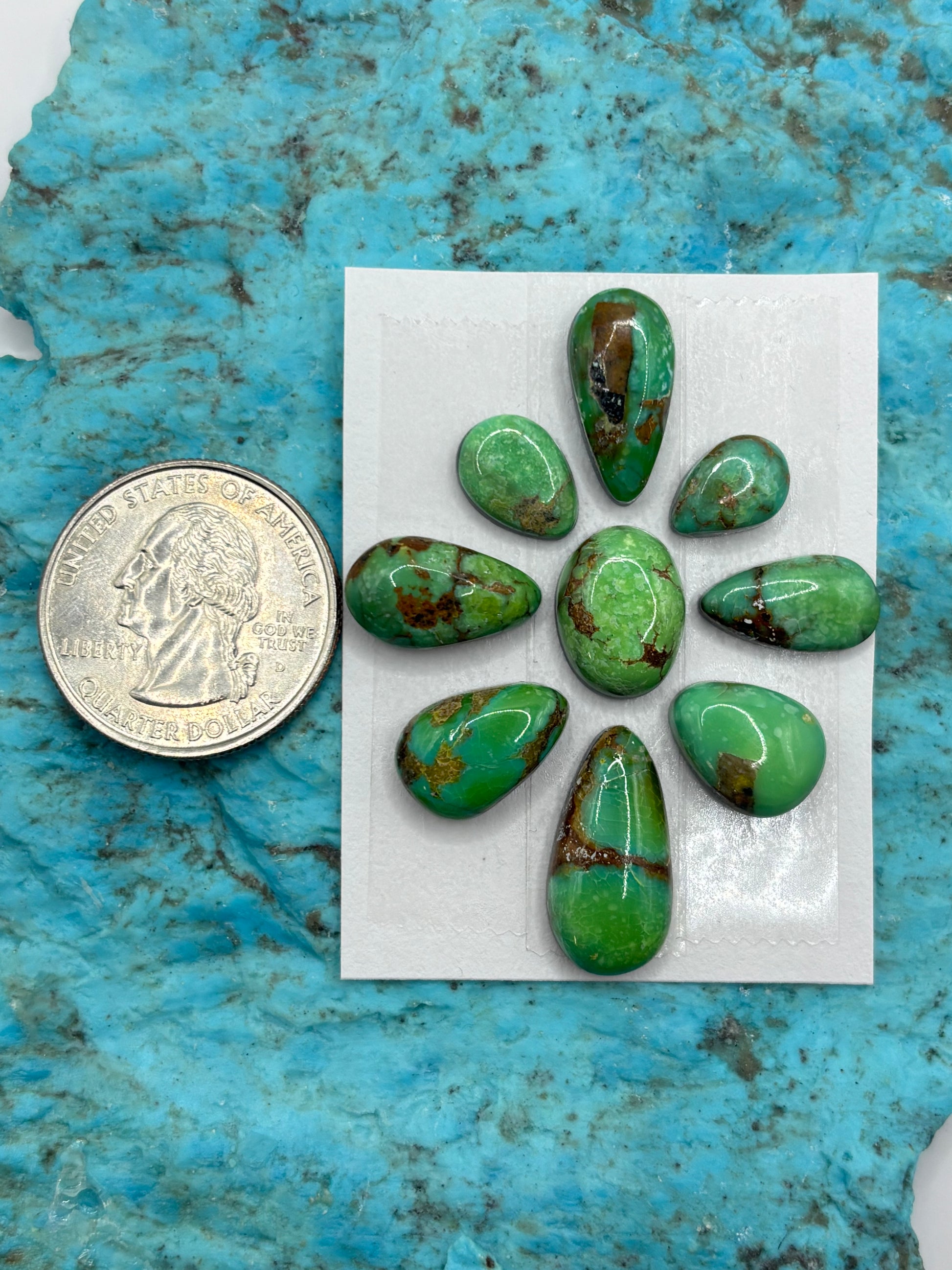 9 Cielo Turquoise Cabochons Backed, Sold As Card