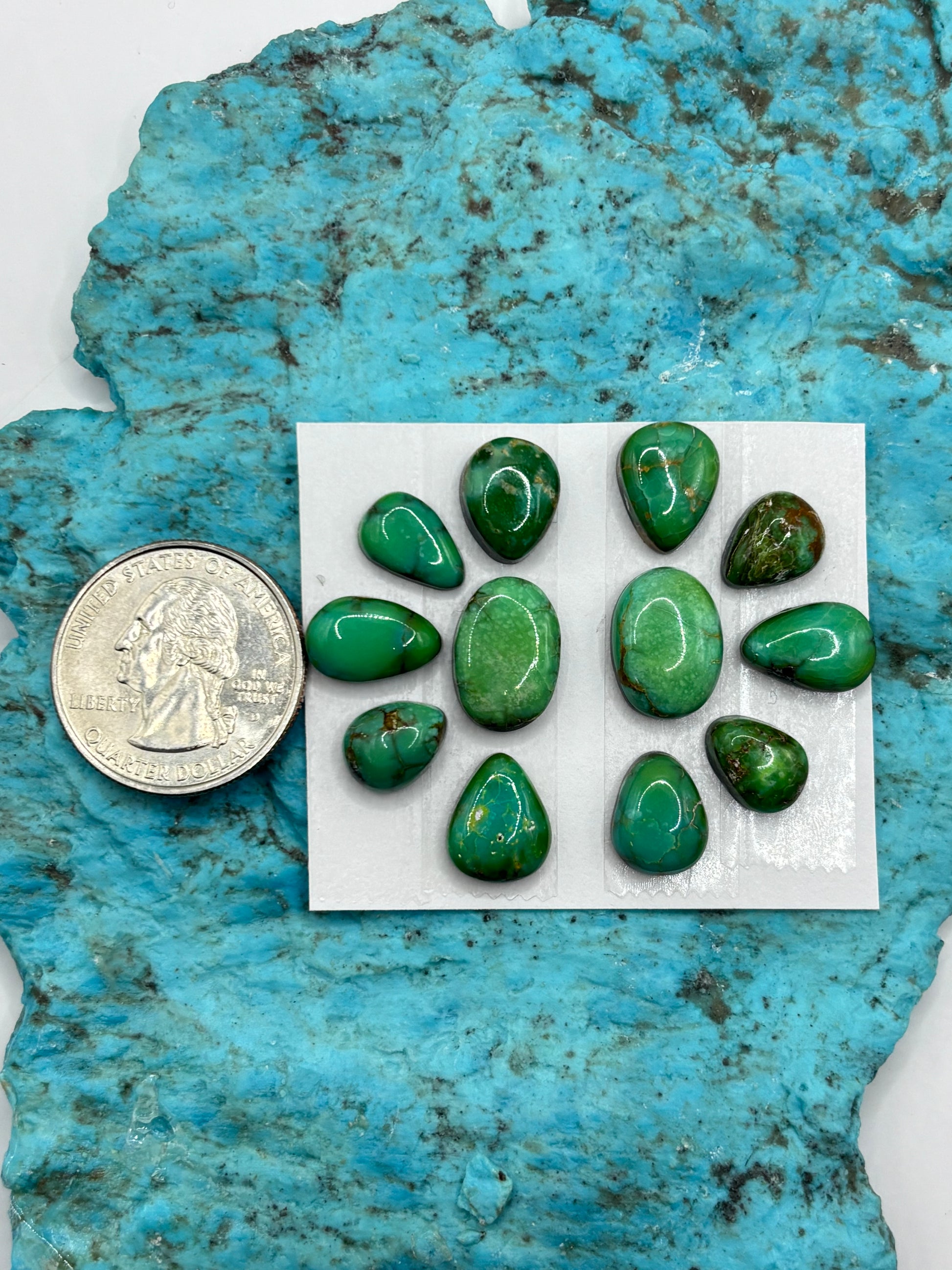 12 Cielo Turquoise Cabochons Backed, Sold As Card
