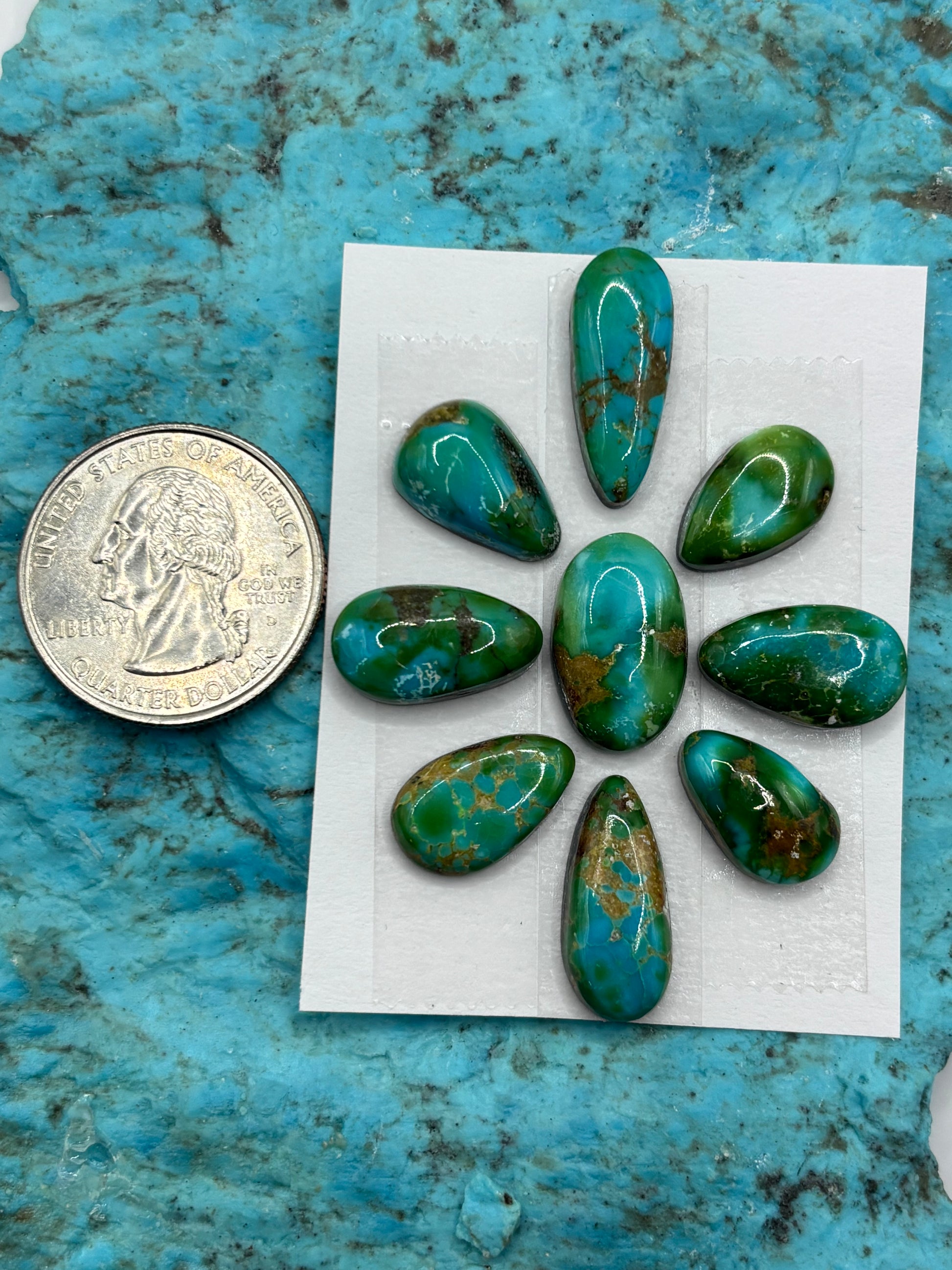 9 Cielo Turquoise Cabochons Backed, Sold As Card