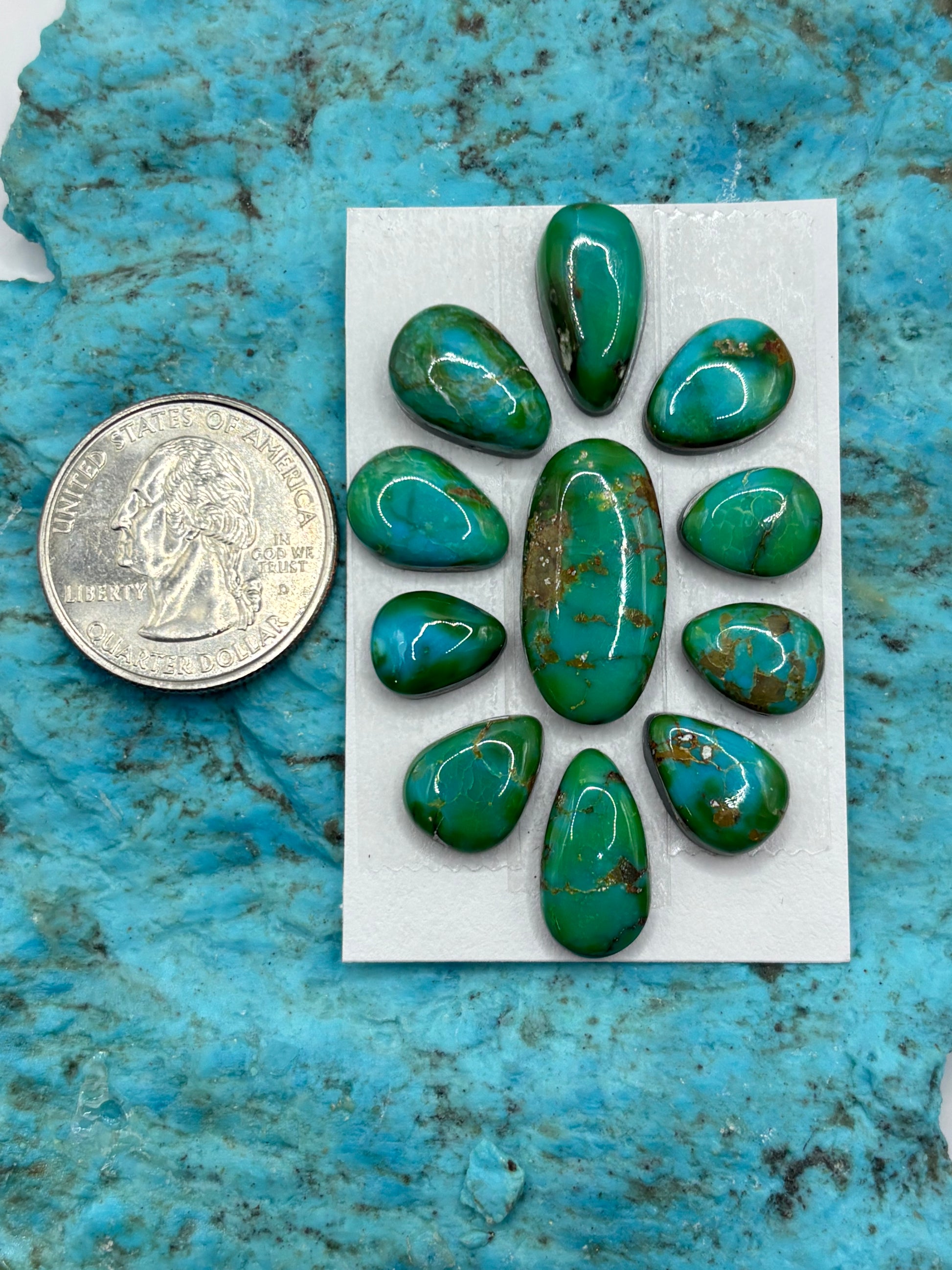 11 Cielo Turquoise Cabochons Backed, Sold As Card