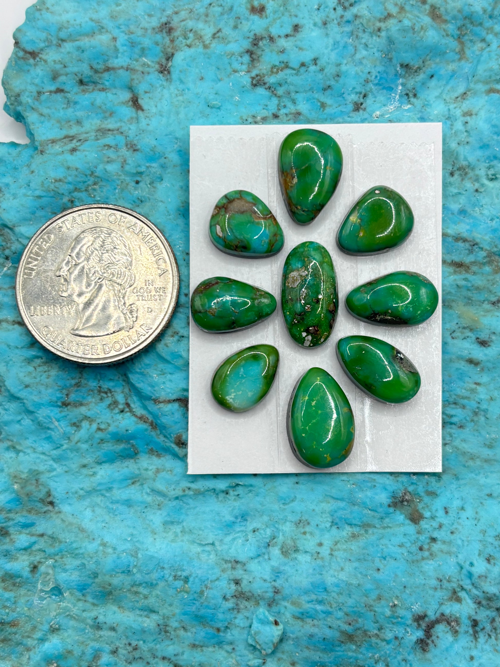 9 Cielo Turquoise Cabochons Backed, Sold As Card