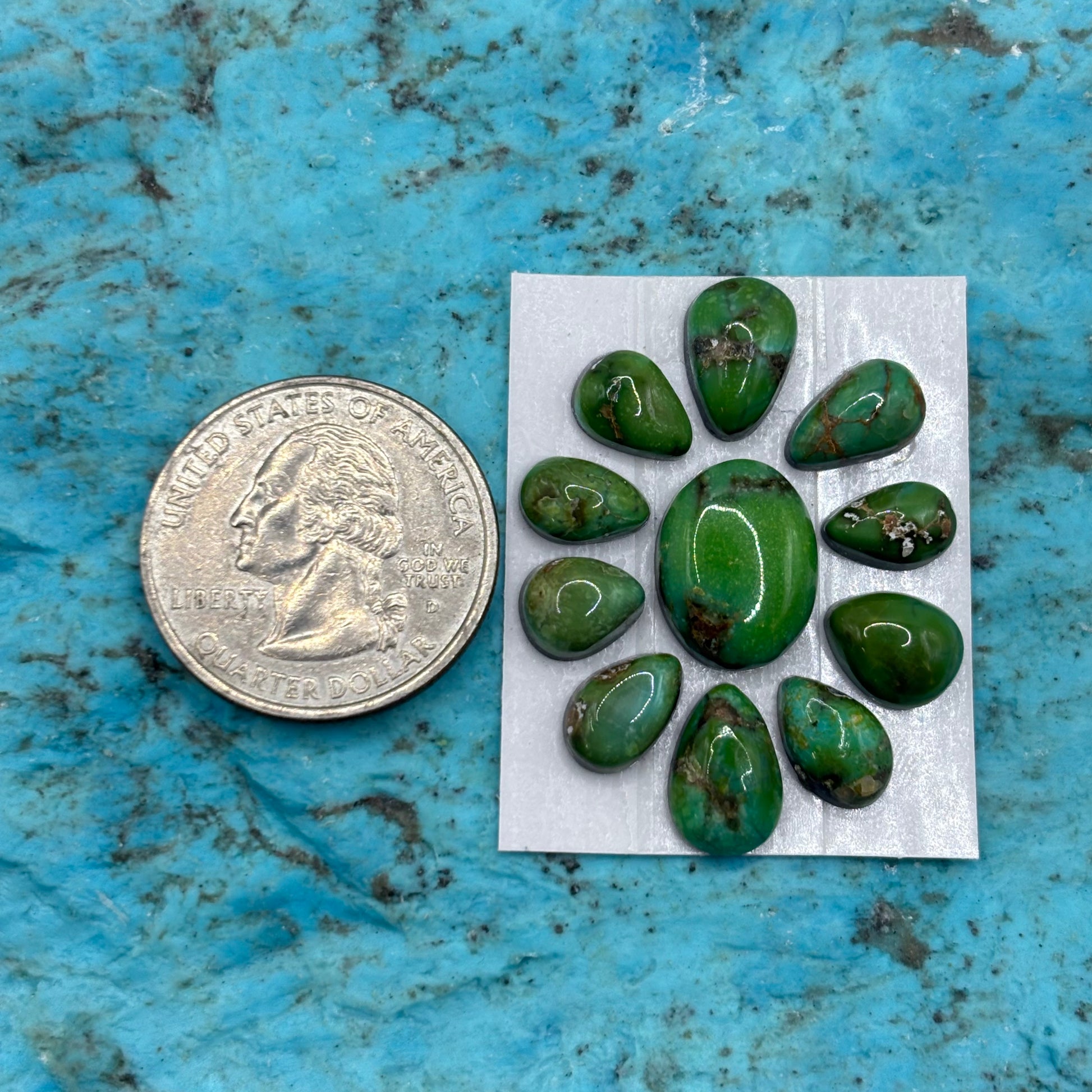 11 Cielo Turquoise Cabochons Backed, Sold As Card