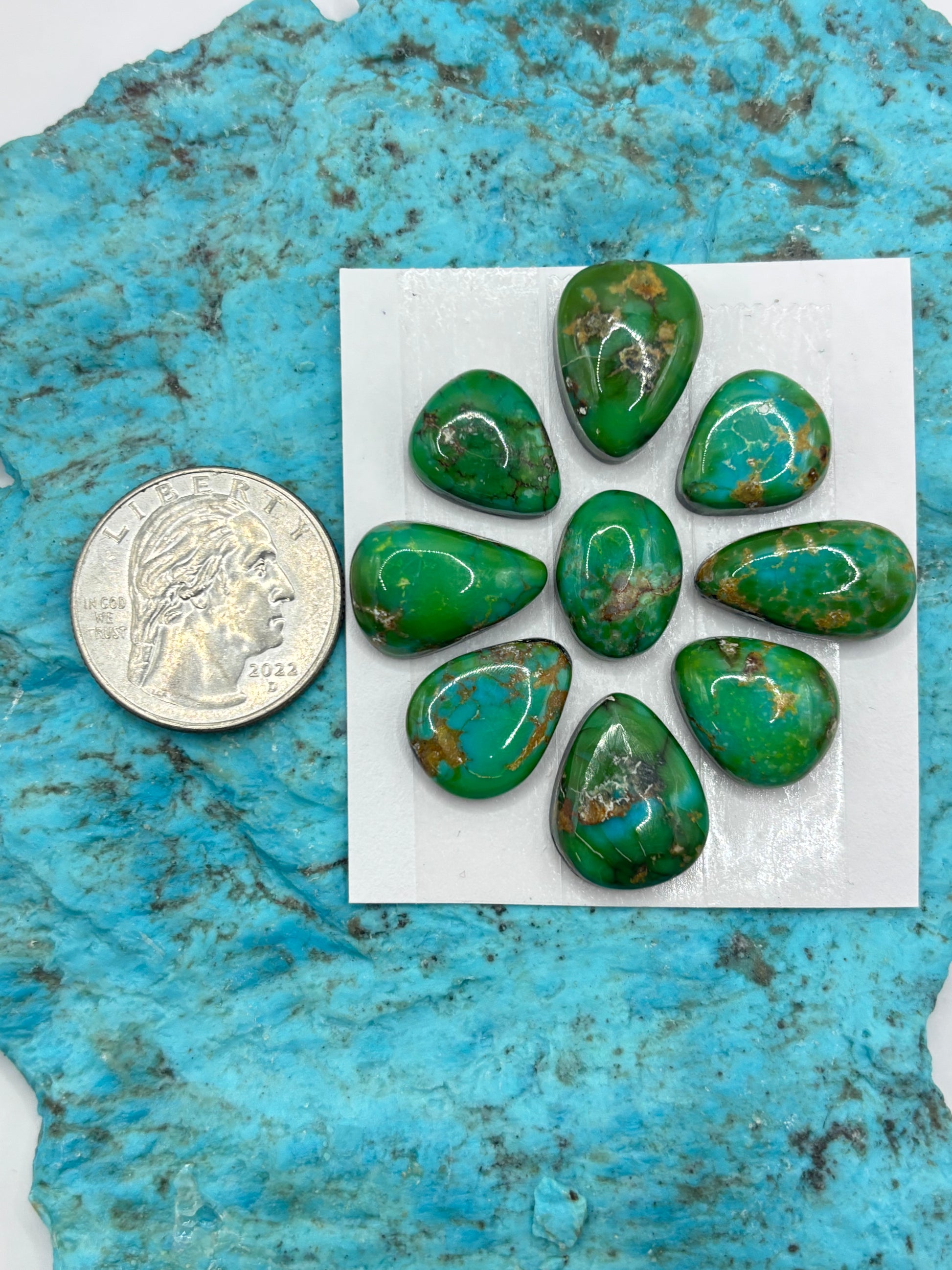 9 Cielo Turquoise Cabochons Backed, Sold As Card