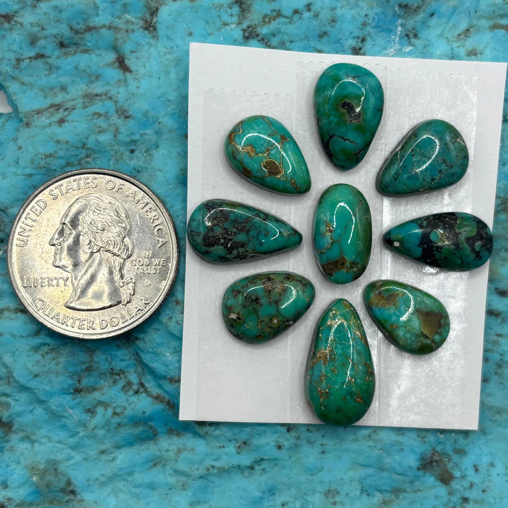 9 Cielo Turquoise Cabochons Backed, Sold As Card