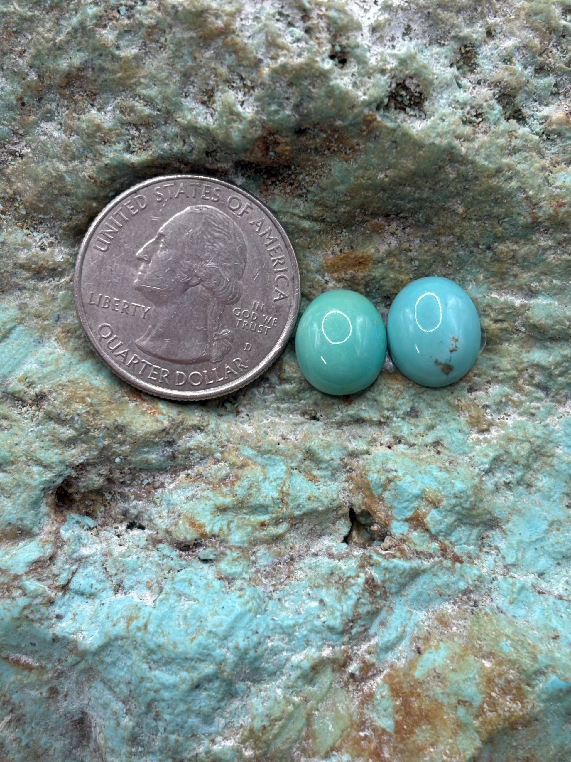 2 Matched Sonoran Turquoise 10x12mm Oval Calibrated Cabs