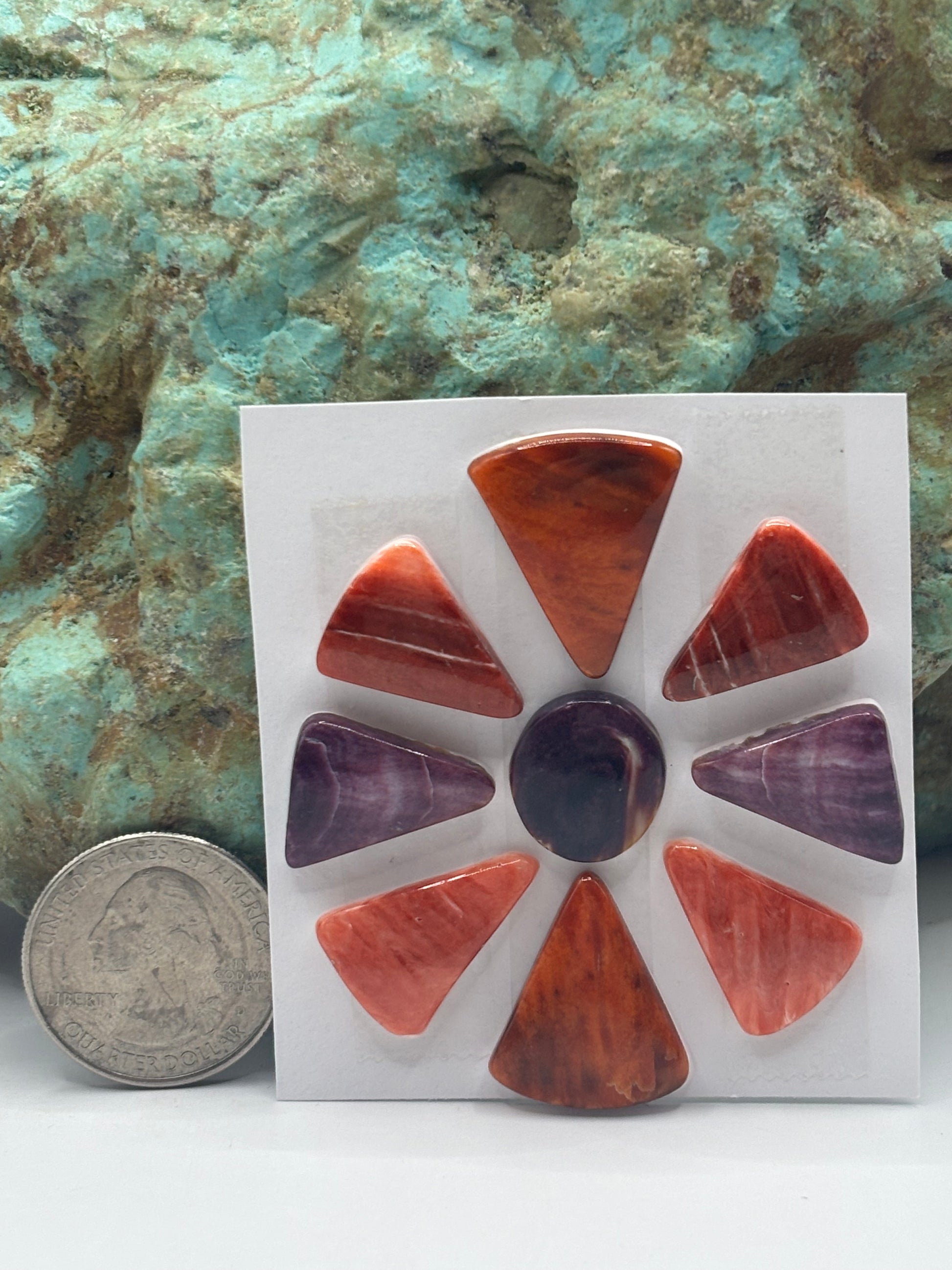 6 Red Spiny Oyster Cabochons Unbacked, 3 Purple Spiny Oyster Cabochons Unbacked
