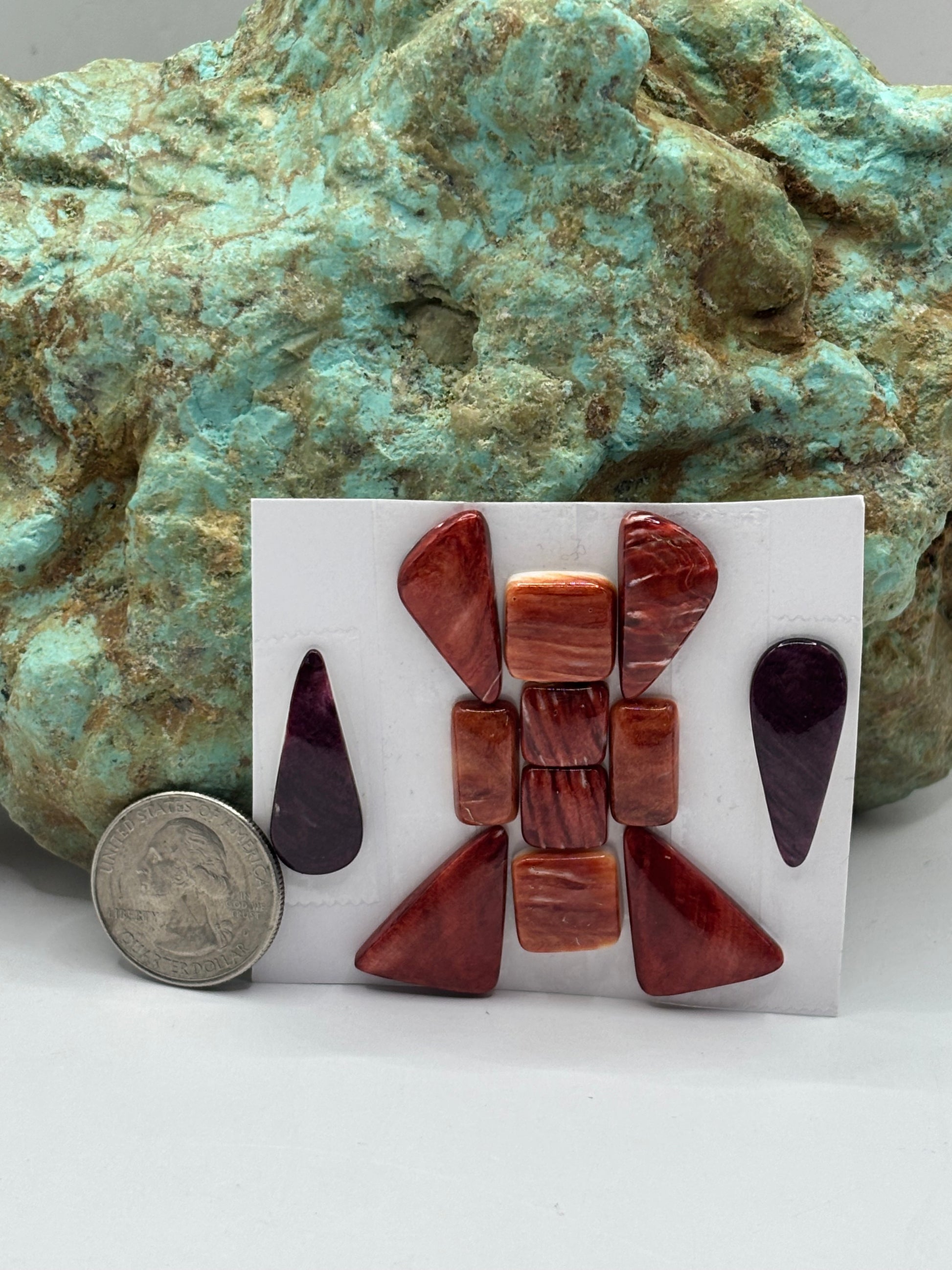 10 Red Spiny Oyster Cabochons unbacked, 2 Purple Spiny Oyster Cabochons Unbacked